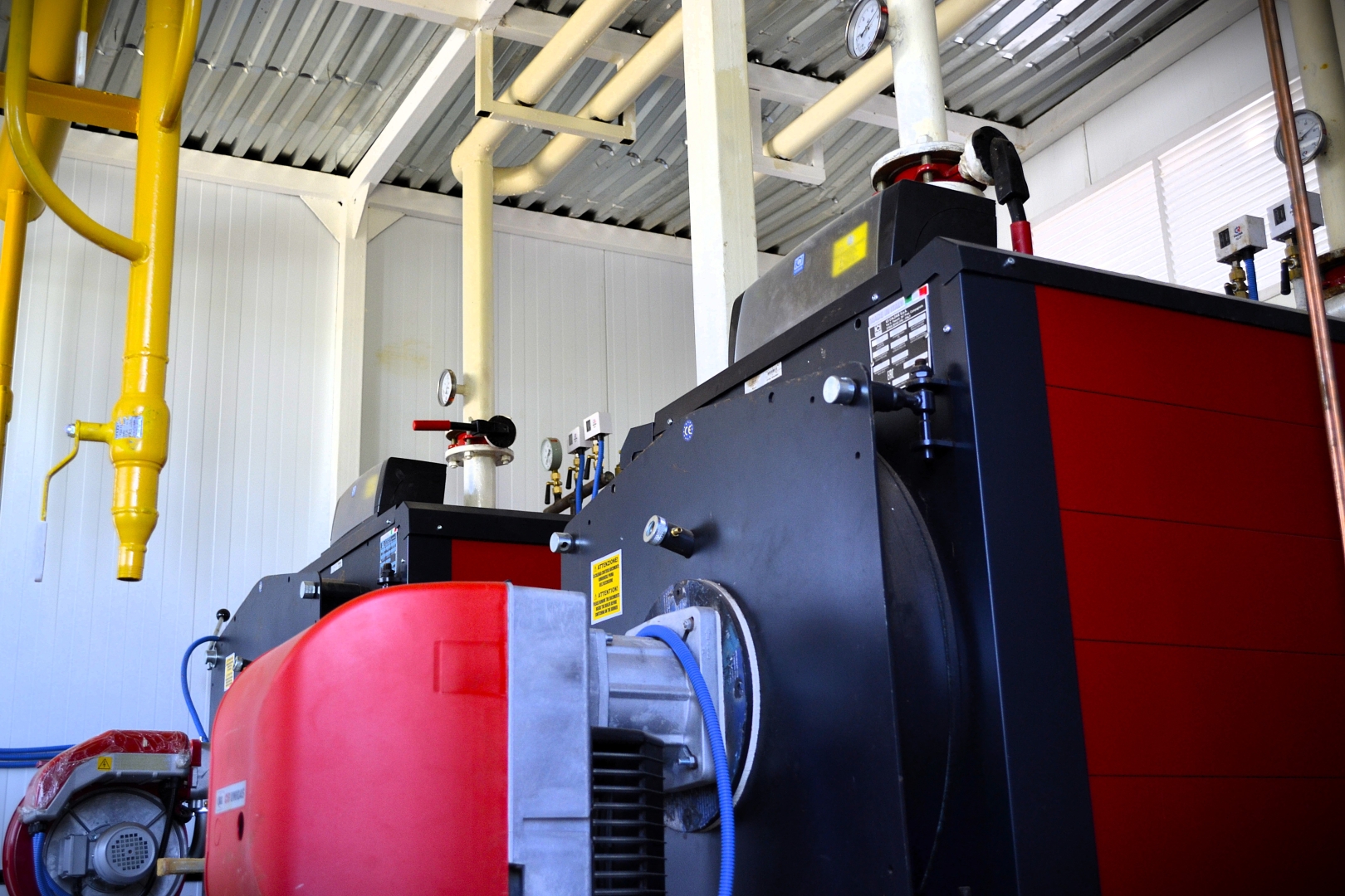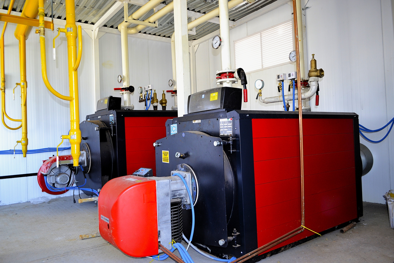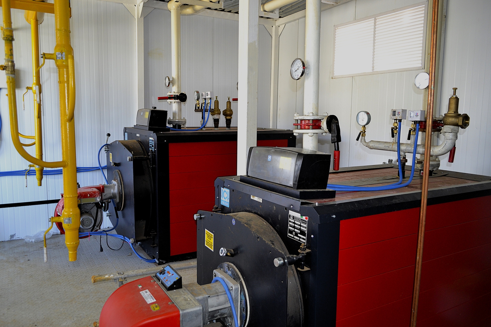 Котельное оборудование производства ICI Caldaie марки REX 30, REX 35 Италия 2 шт моноблочные трехходовые котлы средней мощности цилиндрического горизонтального типа с инверсией пламени в топке и тремя газоходами котлового блока. Автоматизированные жаротрубно-дымогарные котлы с реверсивным прохождением продуктов сгорания топка приварена к задней стенке котлового блока. Используется принцип трехходового реверсивного прохождения продуктов сгорания. Предназначены для производства воды с максимальной температурой до 115 °С в составе котельных для теплоснабжений зданий, сооружений. Топки адаптированы под большинство наддувных горелок отечественного и импортного производства. В конструкции используются турбуляторы. Внешняя обечайка укрыта изолирующим слоем из стекловаты толщиной 60 ÷ 80 мм, который в свою очередь защищен тканью из минеральных волокон. Срок службы котлов, заявляемый производителем, при соблюдении правильных условий эксплуатации и соблюдении режима химической подготовки воды до 25 лет.